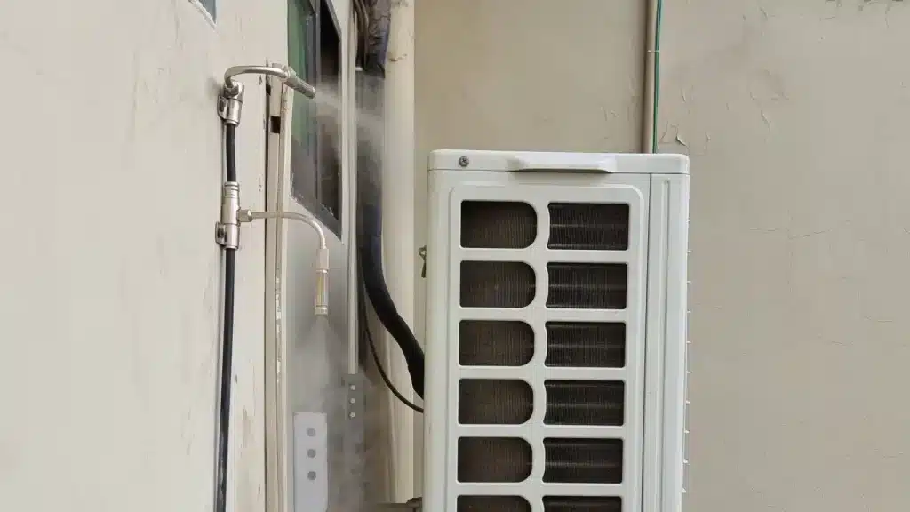 Our mist system sprays water around the outdoor unit. This enhances the cooling process by enabling the AC system to extract heat more effectively, leading to several key benefits: